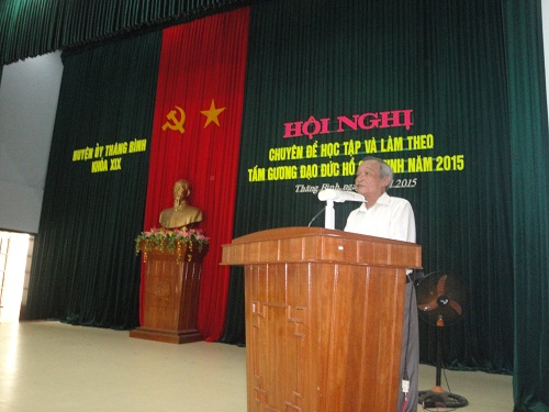 Tại hội nghị TS Trần Quốc Long- Nguyên Trưởng Khoa Tư tưởng Hồ Chí Minh Học viện Chính trị Hành chính Quốc gia Hồ Chí Minh khu vực III đã trực tiếp truyền đạt các nội dung chuyên đề năm 2015:“học tập và làm theo tấm gương đạo đức Hồ Chí Minh về trung thực, trách nhiệm; gắn bó với nhân dân; đoàn kết, xây dựng Đảng trong sạch vững mạnh”.