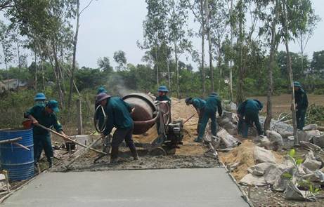 Lực lượng vũ trang xã Bình Chánh tham gia làm đường bê tông