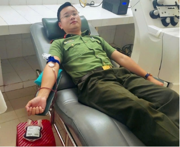 (Đại úy Phan Trần Huy trong một lần tham gia hiến máu cấp cứu bệnh nhân nguy kịch tại bệnh viện đa khoa Quảng Nam)