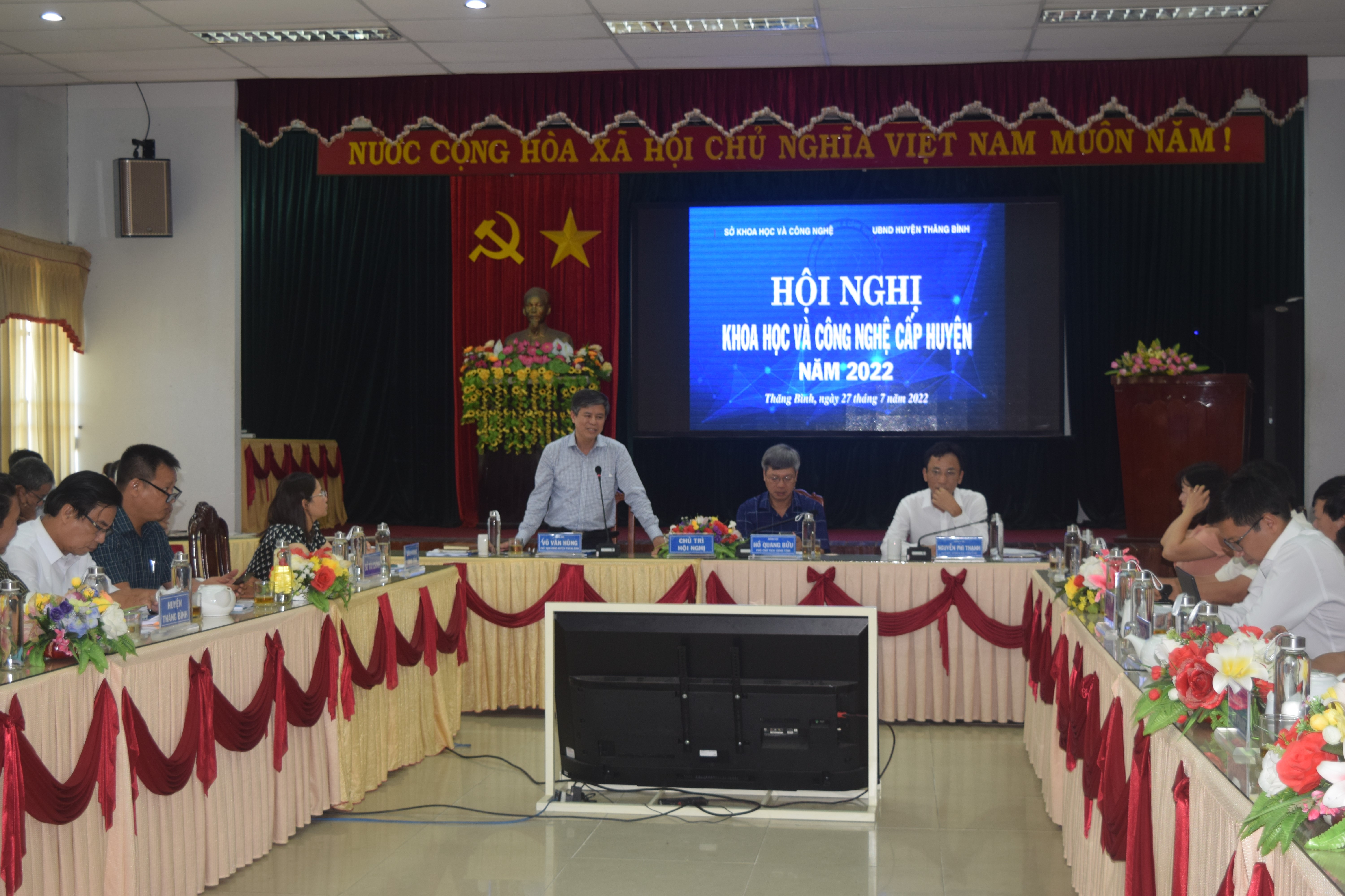 Chủ tịch UBND huyện Thăng Bình Võ Văn Hùng phát biểu tại hội nghị