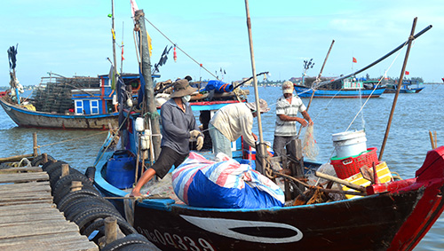 Đang mùa biển động nhưng không khí giao thương hải sản tại bến cá trung tâm xã Bình Minh (thôn Tân An, xã Bình Minh, Thăng Bình) vẫn sôi động vào những ngày qua. Sau khi bán xong thành quả của chuyến biển trong ngày, ngư dân lại tất bật chuẩn bị các công đoạn cần thiết cho chuyến biển tiếp theo. “Thu được 1 tạ ghẹ vào thời điểm cuối mùa là thành quả tương đối lớn của gia đình chúng tôi. Hết tháng này là khoảng ghẹ bước vào mùa sinh sản rồi. Mình tranh thủ, tận dụng thời gian đánh bắt những chuyến lưới ghẹ cuối cùng của năm” - ngư dân Đặng Thanh Chung (thôn Đồng Trì, xã Bình Hải), chủ phương tiện QNa 04339 có công suất 40CV theo nghề lưới ghẹ từ hơn 10 năm qua cho biết. Với 1 tạ ghẹ thu được trong chuyến biển từ đêm đến sáng ở vùng biển ven bờ, gia đình anh Chung bán được 3 triệu đồng. Sau khi trừ chi phí, gia đình thu lãi gần 1,5 triệu đồng. Nghề lưới ghẹ của ngư dân các xã bãi ngang thường bắt đầu khi vụ sản xuất chính của ngư dân vào mùa. Sau khoảng thời gian cao trào đánh bắt (từ tháng 4 đến tháng 11), ngư dân theo nghề lưới ghẹ chuyển sang đánh bắt cá chai, cá trích, cá hố. Thành quả thu được không lớn nhưng cũng trang trải được nhiều khoản phí sinh hoạt. “Đến hết tháng 11, ghẹ không xuất hiện nữa mà tránh vào các rạn, các bãi để làm “gạch”, bước vào mùa sinh sản. Chúng tôi vẫn đều đặn đánh bắt hải sản ven bờ vì đó là sinh kế duy nhất của gia đình chúng tôi từ bao năm nay” - anh Chung nói.