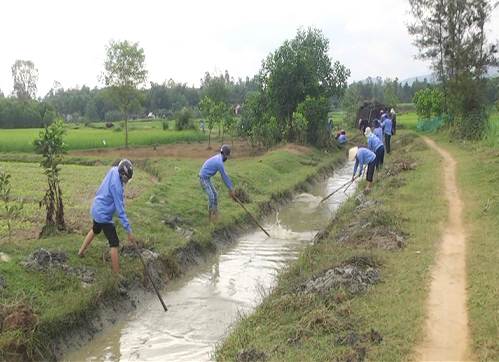 Ảnh: Ra quân nạo vét kênh mương tại xã Bình Định Bắc.