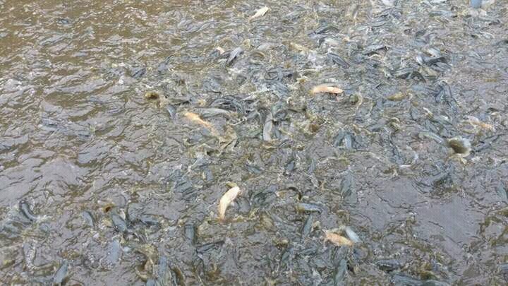 (Ảnh: Mô hình nuôi ếch kết hợp cá trê lai tại trang trại nhà anh Hạ