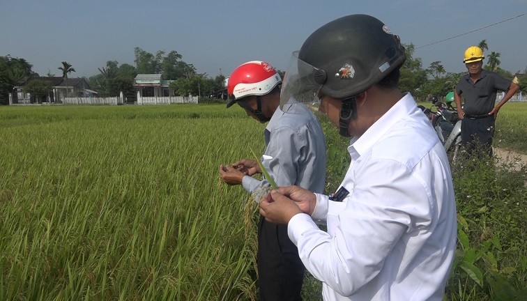 Mô hình nông nghiệp thông minh thích ứng với biến đổi khí hậu được áp dụng trên diện tích 50ha với giống lúa Đài thơm 8 tại thôn Phước Cẩm, xã Bình Tú từ tháng 1 đến nay. Tham gia vào mô hình này, nông dân được tiếp cận với quy trình thâm canh lúa cải tiến (SRI), áp dụng giải pháp kỹ thuật “3 giảm 3 tăng” (ICM) và các biện pháp phòng trừ dịch hại tổng hợp (IPM). Ông Lê Văn Để- Giám đốc Trung tâm Kỹ thuật Nông nghiệp huyện Thăng Bình cho biết, thực hiện quy trình thâm canh cây lúa theo mô hình CSA đã mang lại hiệu quả so với phương thức truyền thống. Khi thực hiện việc bón phân tập trung giai đoạn đầu đã làm tăng hiệu quả sử dụng, cây trồng hấp thu hết và không lãng phí ra môi trường xung quanh, hạn chế bay hơi, rửa trôi, lượng phân được cân đối giữa lượng hữu cơ và vô cơ. Đặc biệt, việc áp dụng quy trình tưới “Ướt khô xen kẽ” đã giảm được số lần lấy nước tạo điều kiện cho bộ rễ được thông thoáng, ăn sâu chống đổ ngã tốt hơn. “Ngoài việc áp dụng tất cả các biện pháp trên, nông dân còn thực hiện cơ giới hóa từ khâu làm đất đến khi thu hoạch. Khi canh tác lúa theo mô hình này sẽ giúp nông dân tiếp cận và ứng dụng tiến bộ khoa học kỹ thuật trong việc canh tác lúa, tiết kiệm nước, phù hợp với biến đổi hiện nay.”- ông Lê Văn Để cho biết thêm.