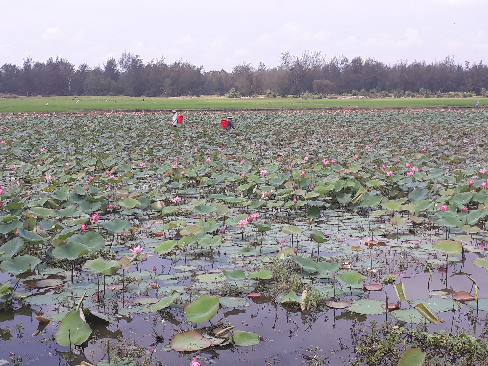 (Gia đình anh Châu Văn Tống đang thu hoạch sen)