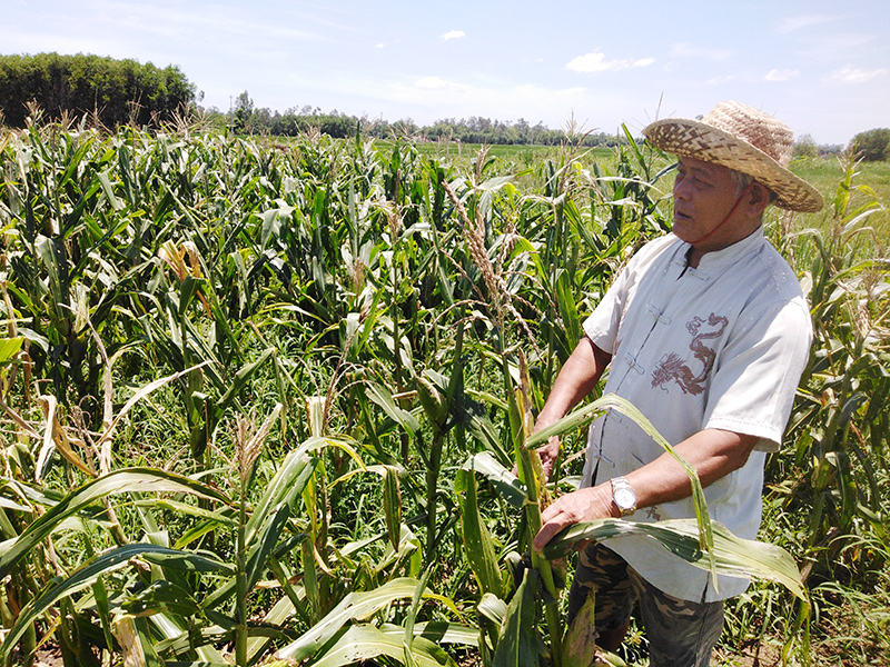 Trồng bắp nhiều năm, nhưng vụ hè thu này, ông Nguyễn Văn Phụng (tổ 15, thôn Lý Trường, xã Bình Phú) mới thấy xuất hiện loại sâu gây hại trên cây bắp có tên gọi là sâu keo mùa thu. Ông cho biết mình bắt đầu trồng 2 sào bắp vào tháng 5 vừa rồi, ngay khi cây bắp sinh trưởng và phát triển được từ 3 đến 4 lá non thì sâu keo mùa thu xuất hiện. Loại sâu này ăn lá, ăn luôn cả phần thân cây bắp.