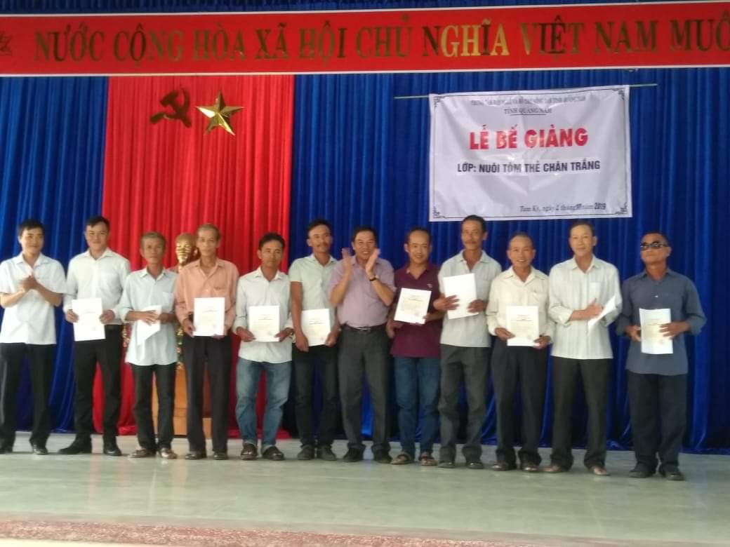Lớp học được khai giảng vào cuối tháng 7/2019 với 33 học viên tham gia. Trong thời gian học 120 tiết, các học viên đã được trang bị những kiến thức cơ bản về cách nhận biết và đặc điểm của tôm thẻ chân trắng, kỷ thuật xử lý ao nuôi, quy trình thâm canh, chăm sóc, triệu chứng và cách phòng, điều trị bệnh đối với tôm thẻ chân trắng. Đặc biệt các học viên đã được thực hành tại ao nuôi, giúp học viên tiếp cận thực tế để áp dụng vào sản xuất đạt năng suất và hiệu quả.