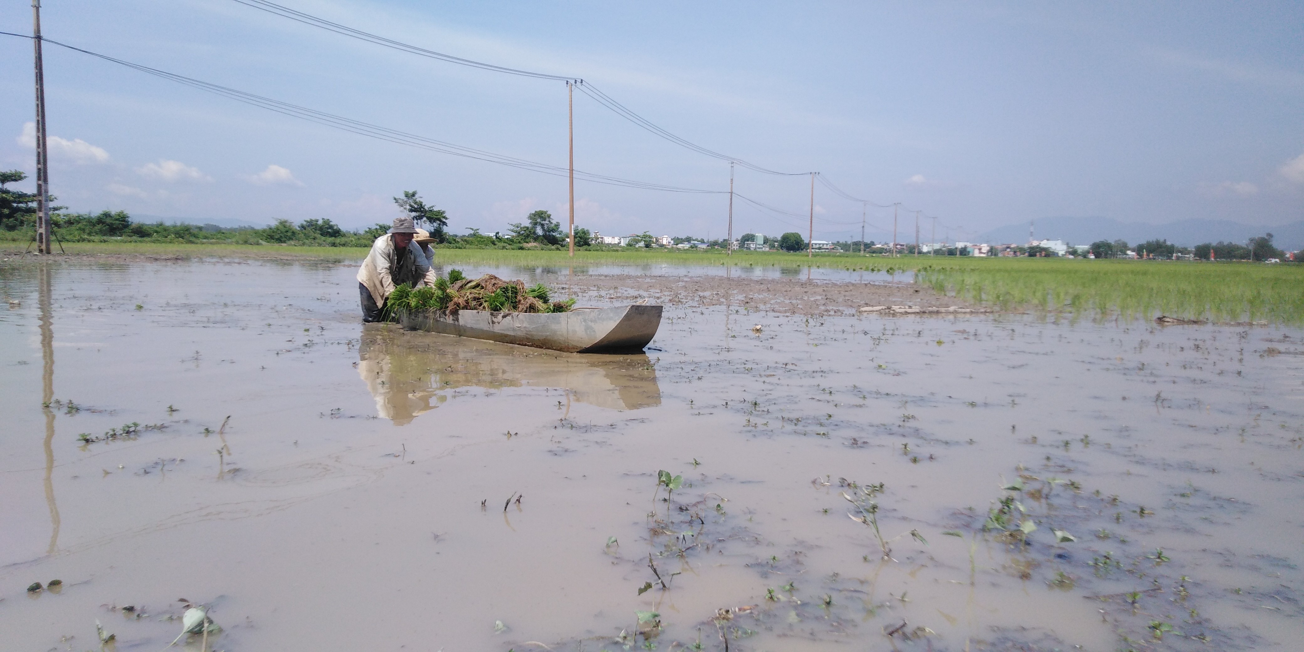 Do chân ruộng sâu và có nhiều bùn nên người dân phải dùng thuyền để vận chuyển mạ cấy