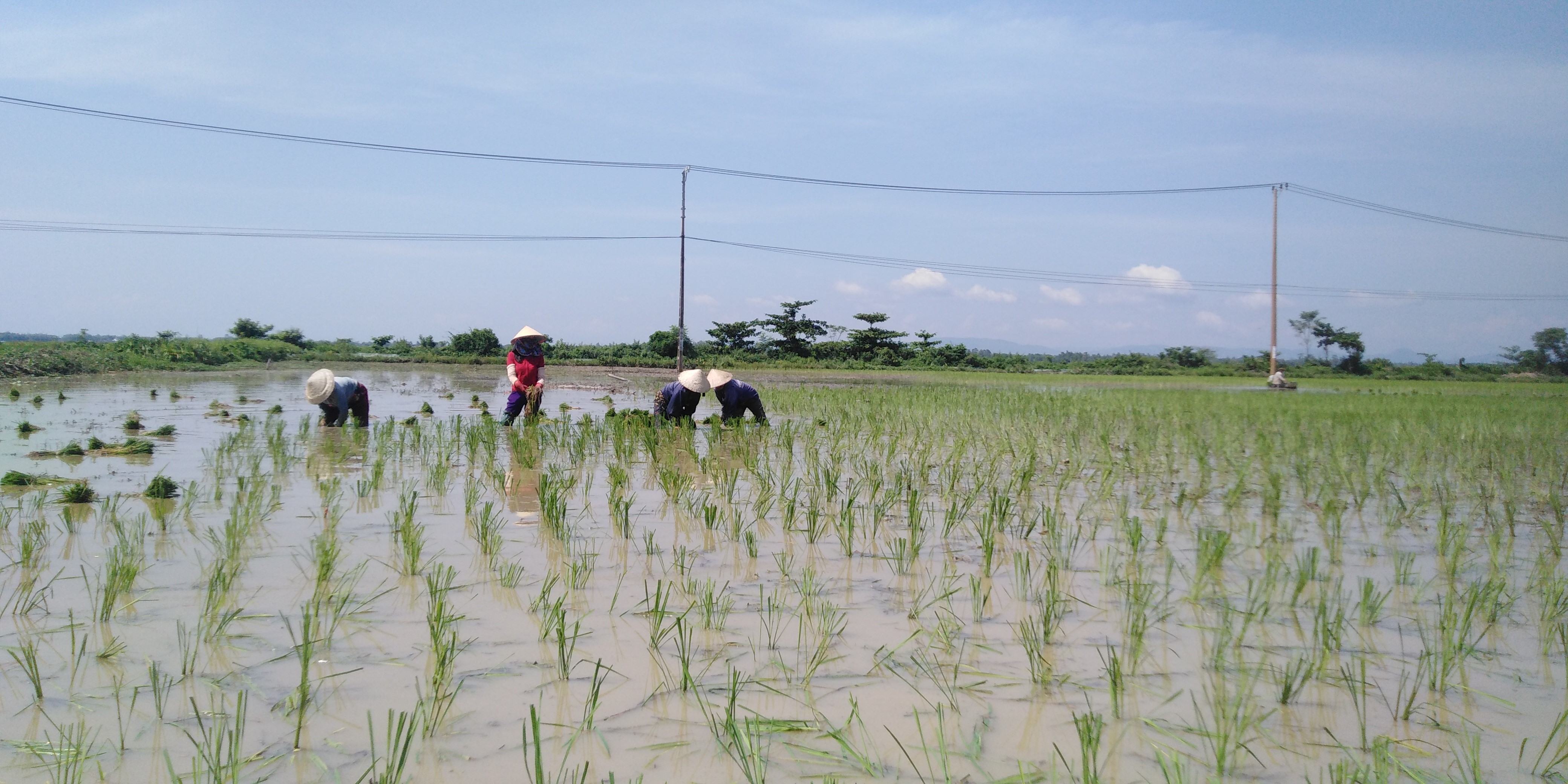 Vào thời điểm này, hầu hết lúa vụ hè thu trên địa bàn huyện Thăng Bình đã bước vào giai đoạn đẻ nhánh-làm đòng. Vậy mà, 7ha đất sản xuất ở khu phố 4 thị trấn Hà Lam mới bắt đầu được cấy giống nếp Hương Lân. Ba năm trở lại đây toàn bộ diện tích đất tại đây bị bỏ hoang. Một phần vì đất ở đây bùn lầy, quá sâu, mặc khác khi người dân gieo sạ thì bị chuột cắn phá nghiêm trọng. Vì vậy nhiều năm, nông dân nơi đây chẳng mấy mặn mà làm lúa. Trước thực trạng này, đầu vụ hè thu, HTX Nông nghiệp Thanh niên Thăng Bình đã đứng ra thuê đất của 45 hộ dân tại đây để sản xuất giống nếp Hương Lân. Điều khá thuận lợi cho HTX, đó là các nông hộ đều thống nhất giao đất, thậm chí, nhiều nhiều hộ đã hiến đất cho HTX sử dụng đến 3 năm, với tổng diện tích khoảng 3ha.