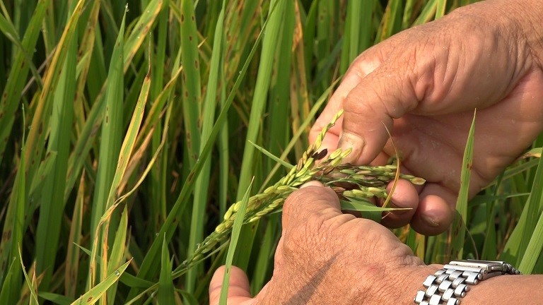 Theo đó, đối với bệnh đạo ôn cổ bông, cổ gié, bà con cần tăng cường kiểm tra đồng ruộng và tiến hành phun phòng đạo ôn cổ bông trước khi lúa trổ 5 - 7 ngày trên các giống nhiễm như: BC15, 13/2, Xi23, KD18, TBR225, Đài Thơm 8… bằng các loại thuốc đặc hiệu như: Fuji-one 40EC, Filia 525 SE, Beam 75 WP, Flash 75 WP, Mapfamy 700WP... Nếu chưa phun thuốc kịp ở giai đoạn trước trổ thì phun ở giai đoạn sau khi trổ từ 5 - 7 ngày. Tốt nhất nên phun thuốc phòng bệnh khi lúa trổ lác đác (phóng tiêu). Ngoài ra, với điều kiện thời tiết như hiện nay thì khả năng bệnh lem lép - thối hạt sẽ gây hại mạnh, nhất là trên các giống mẫn cảm với điều kiện thời tiết như: Thiên ưu 8, BC15, TBR225, Đài Thơm 8… cần tiến hành phun phòng, trừ bệnh bằng các loại thuốc đặc hiệu như: Tilt super 300EC, Anvil 5SC, Starner 20WP,… giai đoạn trước, hoặc sau khi trổ 5 - 7 ngày. Đối với sâu cuốn lá nhỏ, hiện nay trên đồng ruộng đã xuất hiện sâu non tuổi nhỏ (tuổi 1-2), bướm rãi rác, lứa sâu này sẽ tập trung gây hại lá đòng trên lúa trà muộn. Cần thường xuyên kiểm tra đồng ruộng để kịp thời phát hiện sâu non tuổi nhỏ (tuổi 1-3), khi phát hiện sâu với mật độ từ 20 con/m2 trở lên thì tiến hành dùng một trong các loại thuốc BVTV như: Virtako 40WG, Angun 5 WG, Proclaim 1.9EC, Dylan 10EC... để phun trừ ngay trước khi lúa trổ.