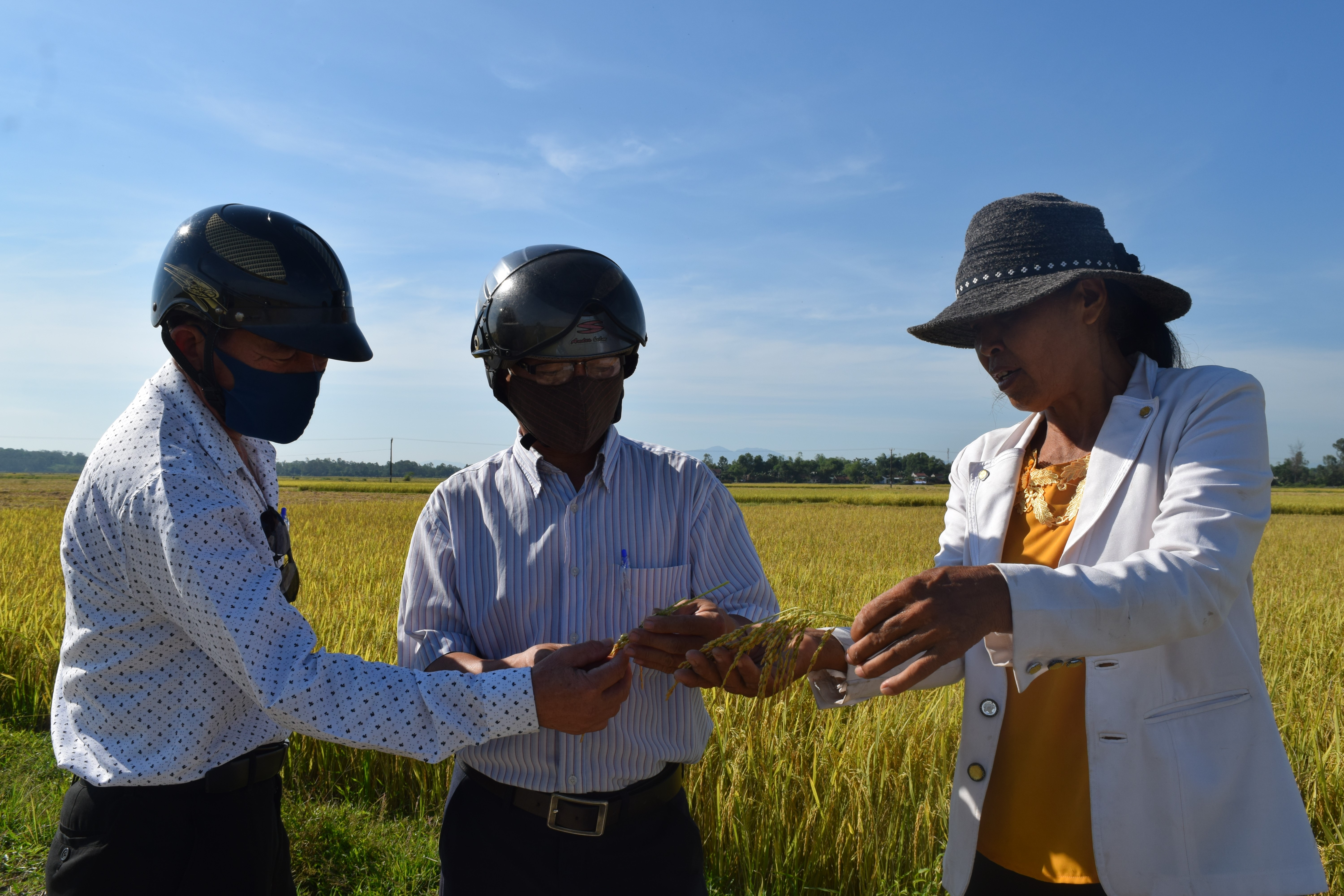 Theo ông Hồ Ngọc Quảng - Phó Giám đốc Trung tâm kỹ thuật nông nghiệp huyện Thăng Bình, ngoài 100 ha lúa tại xã Bình Trung, mô hình CSA từ dự án WB7 cũng được thực hiện tại 7 địa phương trên địa bàn huyện Thăng Bình gồm: Bình Tú, Bình Trung, Bình Quế, Bình Nam, Bình Giang, Bình Đào và Bình Qúy; tổng diện tích 400ha, trong đó có 350 ha sản xuất lúa và 50 ha trồng cây đậu phụng, đậu xanh, dưa gan ở những diện tích không chủ động nước tưới. Mặc dù thời tiết vụ hè thu 2020 có nắng hạn kéo dài, tuy nhiên cây lúa sinh trưởng phát triển tốt, giảm lượng thuốc bảo vệ thực vật và phân bón trên cùng đơn vị diện tích. Vụ hè thu này, chủ quan mà nói thì áp lực về dịch hại không xuất hiện nhiều, tuy nhiên, với việc chọn đúng loại giống lúa triển khai trong mô hình, kết hợp thực hiện đúng quy trình kỹ thuật, các đối tượng dịch hại dễn phát sinh trong vụ này như sâu cuốn lá, rầy nâu tỉ lệ xảy ra rất thấp, từ đó nông dân giảm chi phí. Riêng các loại đậu được thực hiện ở những diện tích sản xuất lúa kém hiệu quả, không chỉ cho năng suất cao, nâng giá trị cây trồng mà còn tránh tình trạng người dân bỏ hoang đất nông nghiệp.