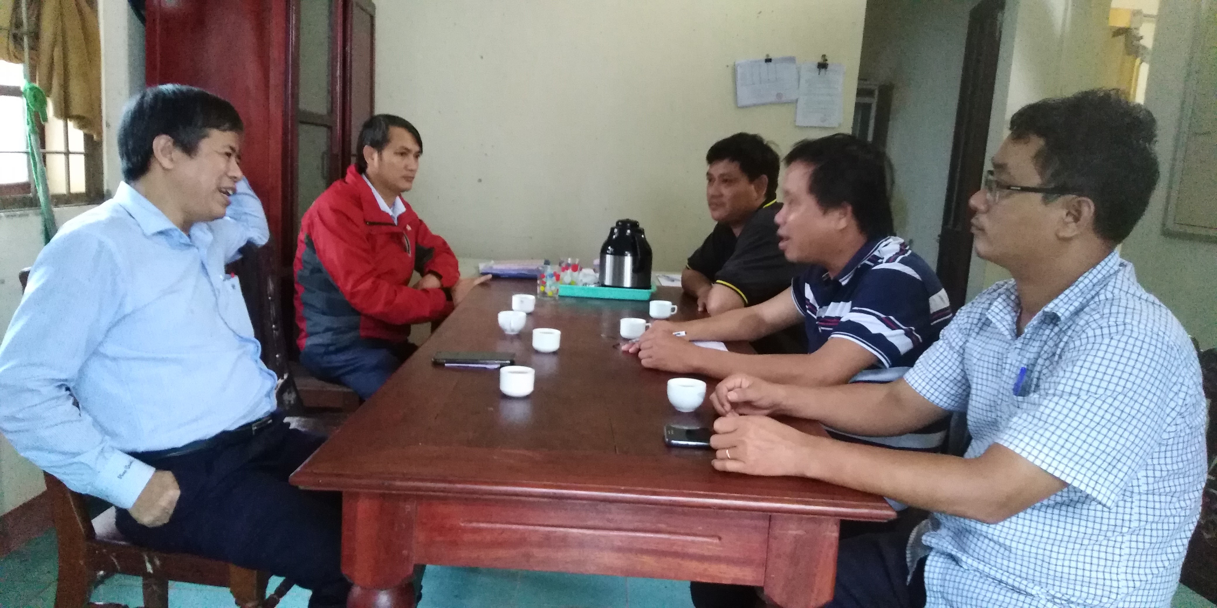 (Các đồng chí Võ Văn Hùng, Nguyễn Xuân Vũ làm việc với Chi nhánh thủy lợi huyện và tổ quản lý, vận hành hồ thủy lợi Đông Tiển)