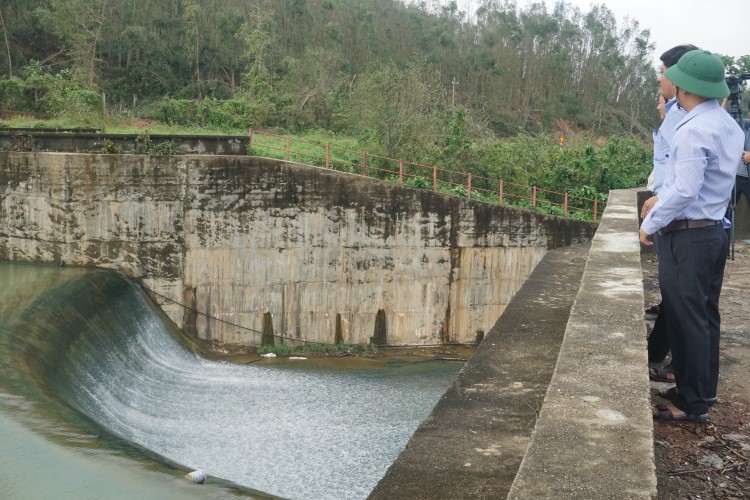 (Ảnh: Hiện hồ chứa nước Phước Hà, nước đã qua tràn tự do)