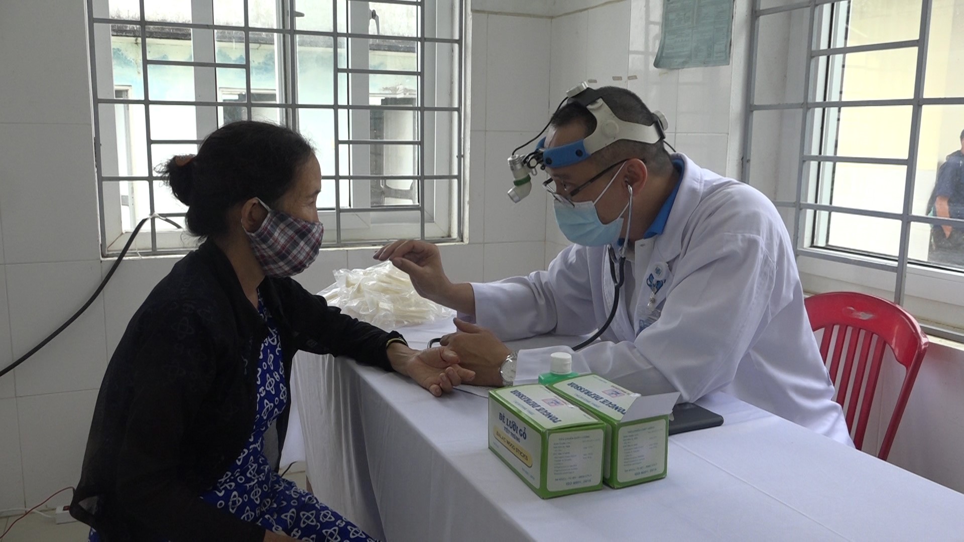 (Ảnh: Hơn 1000 người dân xã Bình Quế, huyện Thăng Bình được khám bệnh, cấp thuốc miễn phí đợt này)