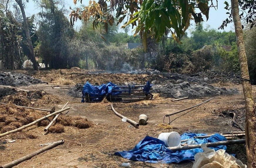 Hiện trường vụ cháy rơm ở xã Bình Trị