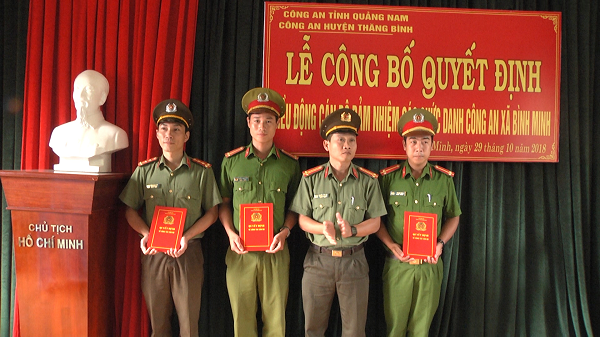 Tại đây, thừa ủy nhiệm của Giám đốc Công an tỉnh Quảng Nam, Công an huyện Thăng Bình đã trao quyết định điều động Đại úy Trần Văn Chiến, sinh năm 1983, Phó Đội trưởng Đội An ninh Công an huyện Thăng Bình đảm nhận chức danh Trưởng Công an xã Bình Minh; Trung úy Nguyễn Thanh Thắng, sinh năm 1991, cán bộ Đội Điều tra tổng hợp đảm nhận chức danh Phó Trưởng Công an xã Bình Minh. Dịp này, Công an huyện Thăng Bình cũng trao quyết định điều động đồng chí Trung úy Võ Như Nam, sinh năm 1990, cán bộ Đội Xây dựng phong trào bảo vệ an ninh Tổ quốc đảm nhận chức danh Công an viên xã Bình Minh. Được biết, với việc điều động cán bộ lần này, Bình Minh là địa phương đầu tiên của huyện Thăng Bình có 100% công an là lực lượng chính quy, tạo điều kiện thuận lợi trong việc đảm bảo an ninh trật tự tại khu vực đang có nhiều dự án trọng điểm được triển khai.