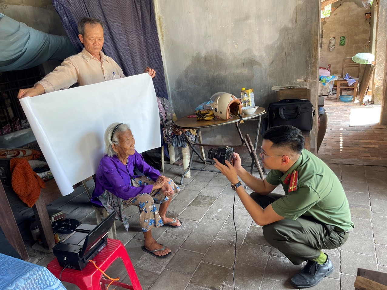 Bên cạnh việc lập danh sách rà soát, vận động, mời những trường hợp công dân chưa làm CCCD đến trụ sở UBND xã để làm, cán bộ chiến sĩ còn đến từng nhà để hỗ trợ. Qua một ngày triển khai, Công an xã đã thu nhận 78 hồ sơ cấp CCCD từ người dân bị tàn tật, già yếu không đi lại được.