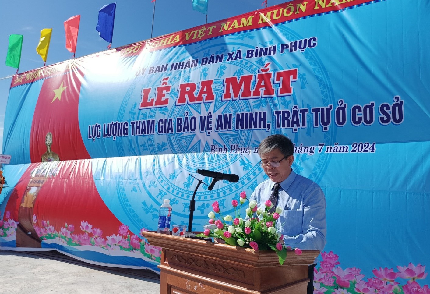 Phát biểu tại buổi lễ, đ/c Võ Văn Hùng- Chủ tịch UBND huyện đề nghị lực lượng tham gia bảo vệ an ninh, trật tự trên địa bàn xã Bình Phục cần nhanh chóng ổn định tổ chức, đi vào hoạt động có nề nếp; chủ động nắm tình hình liên quan đến ANTT tại địa bàn cơ sở, kịp thời báo cáo, thực hiện nhiệm vụ theo yêu cầu, hướng dẫn của Công an xã; tích cực hỗ trợ trong hoạt động phòng cháy, chữa cháy, cứu nạn, cứu hộ trên địa bàn; hỗ trợ quản lý hành chính về trật tự xã hội.