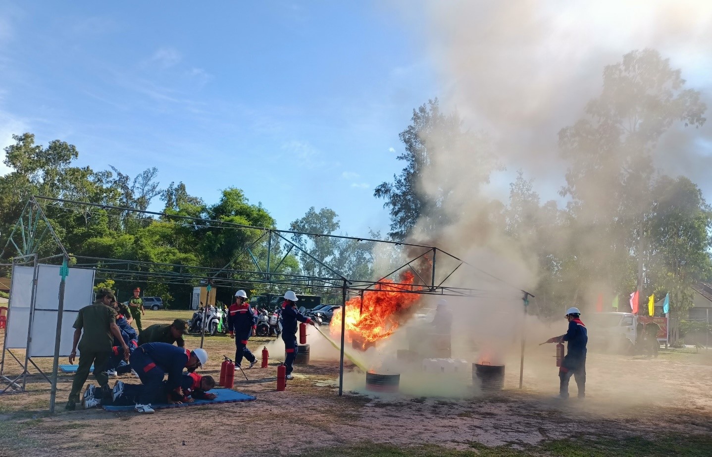 Buổi lễ còn xem xử lý tình huống liên quan đến ANTT và phòng cháy, chữa cháy do chiến sĩ Trung đoàn Cảnh sát cơ động Trung bộ, Tổ liên gia an toàn về PCCC và lực lượng tham gia bảo vệ an ninh, trật tự ở cơ sở thực hiện.