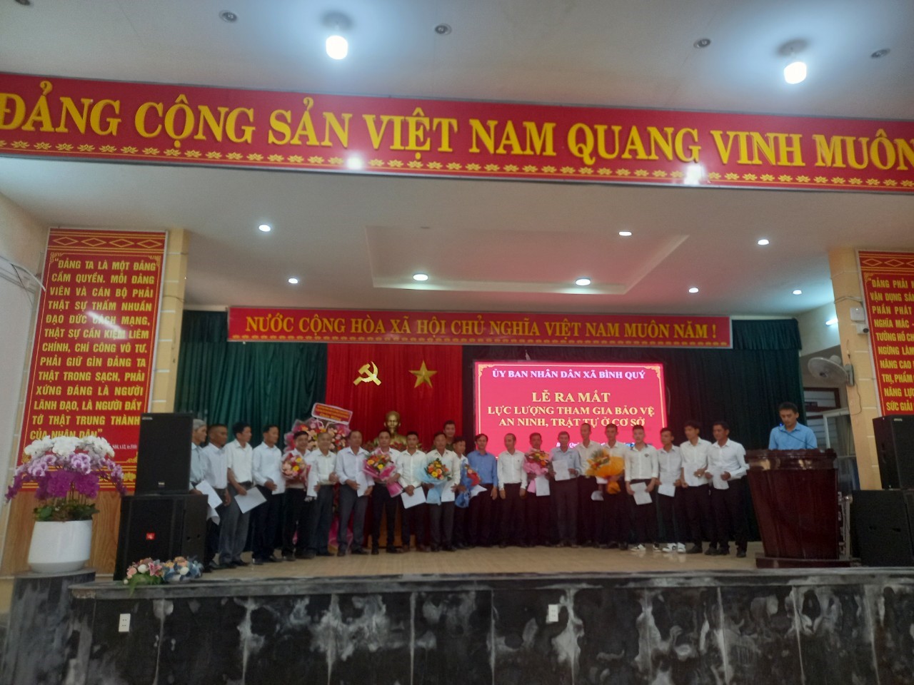 Tại buổi lễ, xã Bình Quý đã ra Quyết định thành lập 06 tổ, bố trí tại 06 thôn thuộc xã với 16 thành viên. Trong thời gian đến, mỗi giờ phút bình yên ở từng thôn xóm, ngoài sự nỗ lực của các lực lượng chuyên trách còn có sự đóng góp thầm lặng, không ngơi nghỉ của Lực lượng tham gia bảo vệ ANTT ở cơ sở, những người gác cửa, giữ bình yên cho cuộc sống nhân dân….
