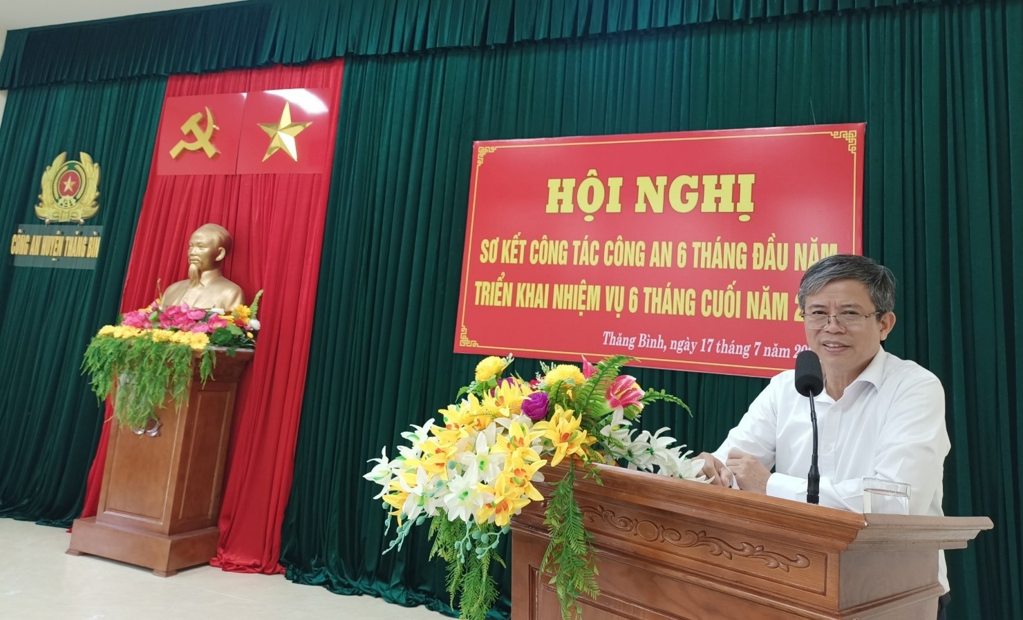 6 tháng đầu năm 2024, Công an huyện Thăng Bình phát hiện, xử lý 23 vụ mua bán, tàng trữ, sử dụng trái phép chất ma túy, 38 vụ phạm pháp hình sự; phát hiện, triệt xoá 14 vụ đánh bạc với 57 đối tượng. Toàn huyện xảy ra 21 vụ tai nạn giao thông đường bộ, làm chết 10 người, bị thương 16 người.