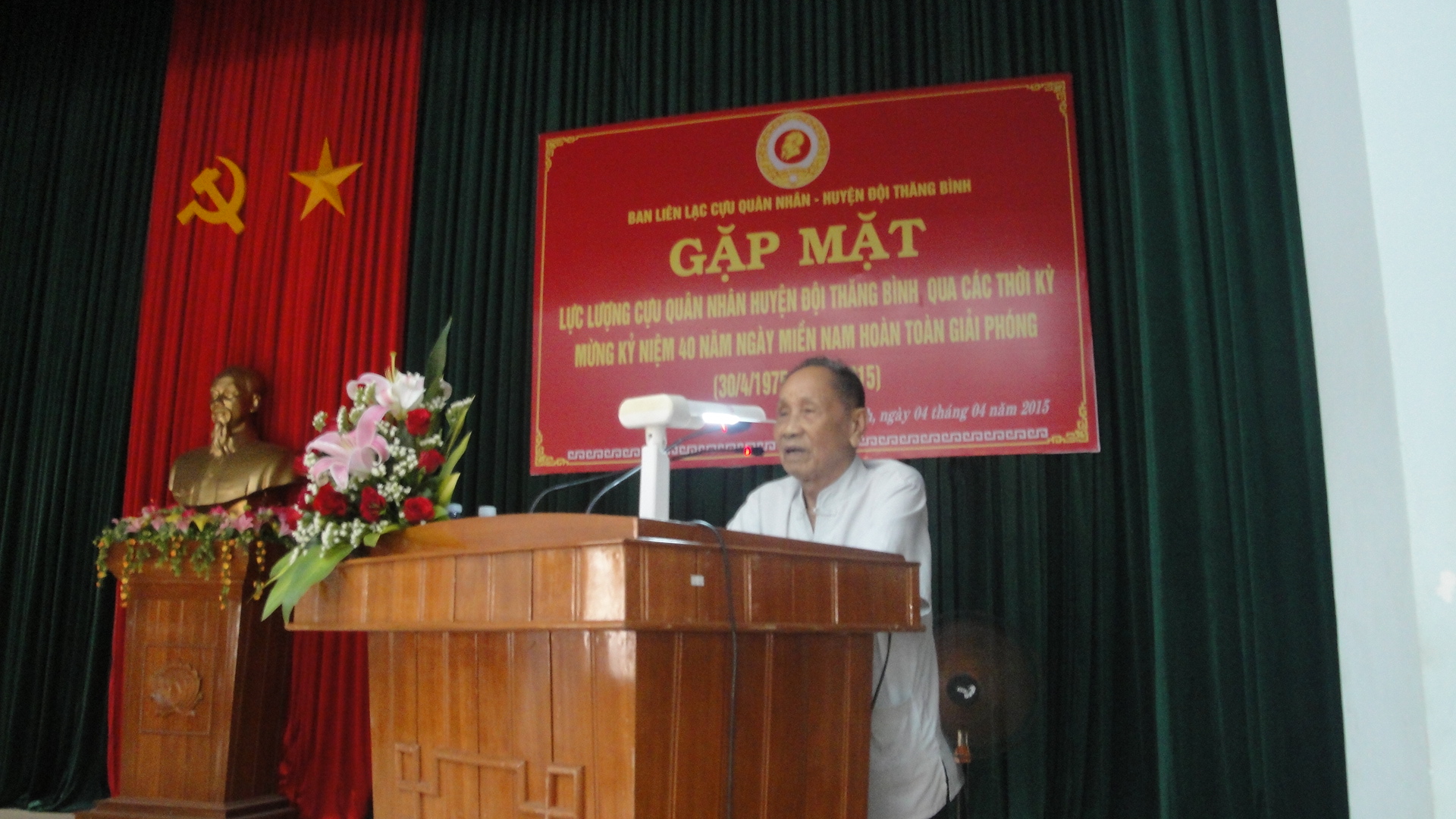 Phát biểu tại buổi gặp mặt, đ/c Hồng Quốc Cường- PBT Thường trực Huyện ủy đã ôn lại truyền thống đấu tranh anh dũng của quân và dân Thăng Bình trong những năm tháng chiến tranh ác liệt; đồng thời nhấn mạnh: Đảng bộ và nhân dân Thăng Bình mãi mãi trân trọng ghi ơn những cống hiến to lớn của những chiến sĩ giải phóng quân, sĩ quan quân đội, những thương binh, bệnh binh, các gia đình có công với cách mạng đã cống hiến xương máu và sức lực của mình cho sự nghiệp giải phóng dân tộc, bảo vệ quê hương đất nước. Đồng chí mong rằng, với những phẩm chất của người lính từng được rèn luyện trong “môi trường quân đội, kỷ luật như sơn”, các đồng chí cựu quân nhân, cựu chiến binh sẽ luôn giữ gìn và tiếp tục phát huy truyền thống “Bộ đội cụ Hồ”, luôn tràn đầy nhiệt huyết cách mạng, tích cực tham gia công tác xã hội, giáo dục truyền thống cho thế hệ trẻ; thực hiện tốt các nhiệm vụ phát triển kinh tế- xã hội, quốc phòng- an ninh ở địa phương, góp phần xây dựng quê hương Thăng Bình ngày càng phát triển giàu đẹp,...