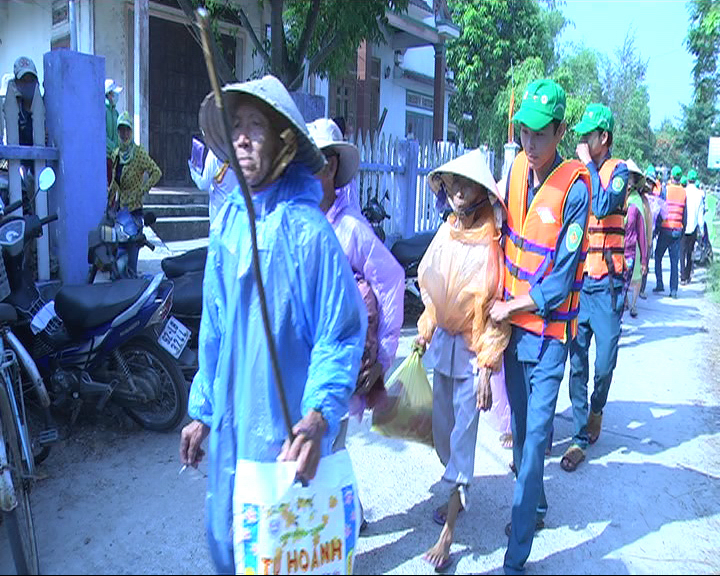 Ảnh: Các lực lượng tổ chức giúp bà con sơ tán khỏi vùng nguy hiểm..