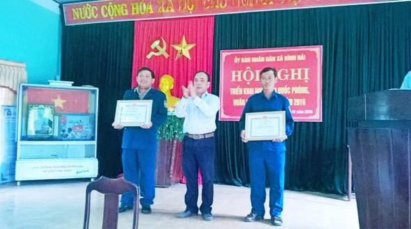 Ảnh: Đ/c Hồ Văn Chung- Chủ tịch UBND trao giấy khen cho tập thể