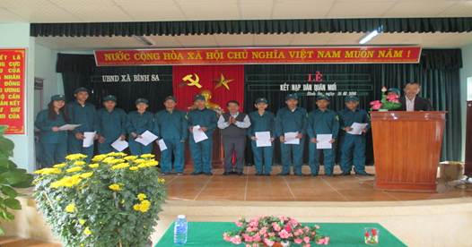 Trong không khí trang nghiêm của buổi Lễ, UBND xã đã công bố các Quyết định kết nạp chiến sĩ Dân quân mới.