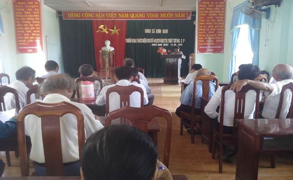 Tại Hội nghị, đồng chí Nguyễn Thành Liêm – Phó CHT Quân sự xã triển khai một số nội dung của Quyết định số 49/2015/QĐ-TTg, quy định chế độ trợ cấp một lần, chế độ bảo hiểm y tế, trợ cấp mai táng phí và cấp “Giấy chứng nhận” đối với dân công hỏa tuyến tham gia kháng chiến chống Pháp, chống Mỹ, chiến tranh bảo vệ Tổ quốc và làm nhiệm vụ quốc tế. Quyết định 49 có hiệu lực thi hành kể từ ngày 01/12/2015 và các chế độ, chính sách quy định tại Quyết định này được thực hiện từ ngày 01/01/2016.