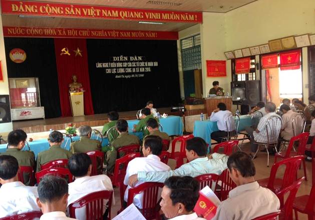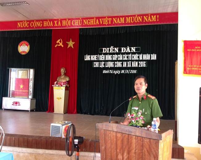 Tại diễn đàn, đồng chí Nguyễn Văn Cảnh- Trưởng công an xã đã báo cáo tình hình thực hiện nhiệm vụ trong năm qua. Với những nổ lực và sáng suốt trong công việc, Ban công an đã có những bước chuyển tích cực được đông đảo nhân dân tin tưởng. Trong công việc luôn gắn trách nhiệm của mỗi đồng chí với học tập và làm theo tấm gương đạo đức Hồ Chí Minh. Tại diễn đàn này, nhân dân đã góp ý cho lực lượng công an phải phát huy những ưu điểm như giải quyết thủ tục hành chính có tinh thần trách nhiệm cao, không gây phiền hà trong nhân dân, xử lý vụ việc kịp thời…Tuy nhiên, lực lượng công an xã phải nghiêm túc khắc phục những hạn chế tồn tại như cần tuyên truyền nhiều hơn nữa Phong trào quần chúng bảo vệ an ninh Tổ quốc trên nhiều diễn đàn, phát huy mô hình tự quản ở dòng tộc, cần xây dựng lực lượng nòng cốt đảm bảo để nắm bắt thông tin kịp thời xử lý vụ việc nhanh, có biện pháp phối hợp để giáo dục thanh thiếu niên có biểu hiện hư hỏng…