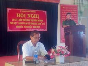 Đến dự hội nghị sơ kết mô hình có thượng tá Nguyễn Kim Long - Phó Trưởng Công an huyện Thăng Bình và các đ/c trong đội nghiệp vụ công an huyện, các đồng chí đại diện Đảng ủy- HĐND-UBND-UBMTTQVN, các ban ngành đoàn thể 3 xã Bình Triều, Bình Đào, Bình Minh.
