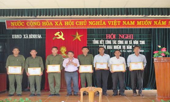 Đ/c Võ Tiến Dũng - HUV, PBT, Chủ tịch UBND xã trao giấy khen cho các tập thể và cá nhân có thành tích xuất sắc trong công tác đảm bảo an ninh trật tự năm 2016