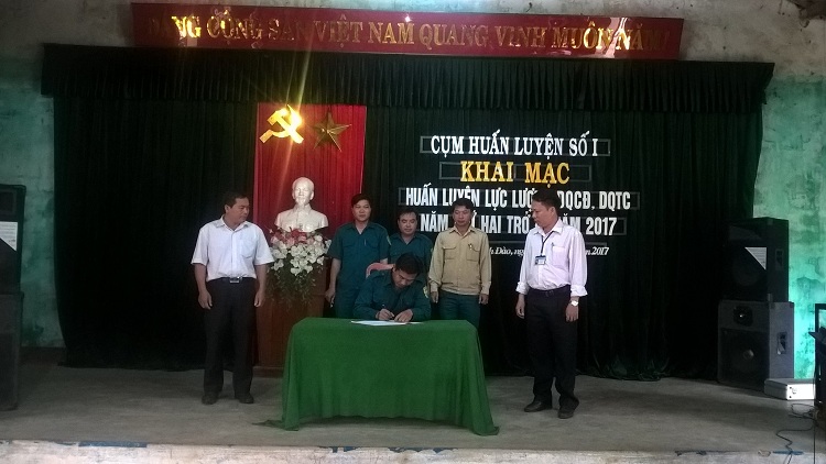 Đến dự khai mạc có đồng chí Đại úy Nguyễn Thành Văn – Phó tham trưởng BCH quân sự huyện và các đồng chí lãnh đạo Đảng ủy, HĐND, UBND, các ngành đoàn thể của 4 xã ( Bình Đào, Bình Minh, Bình Triều và Bình Giang) cùng 94 đồng chí lực lượng dân quân năm thứ 2 trở đi.