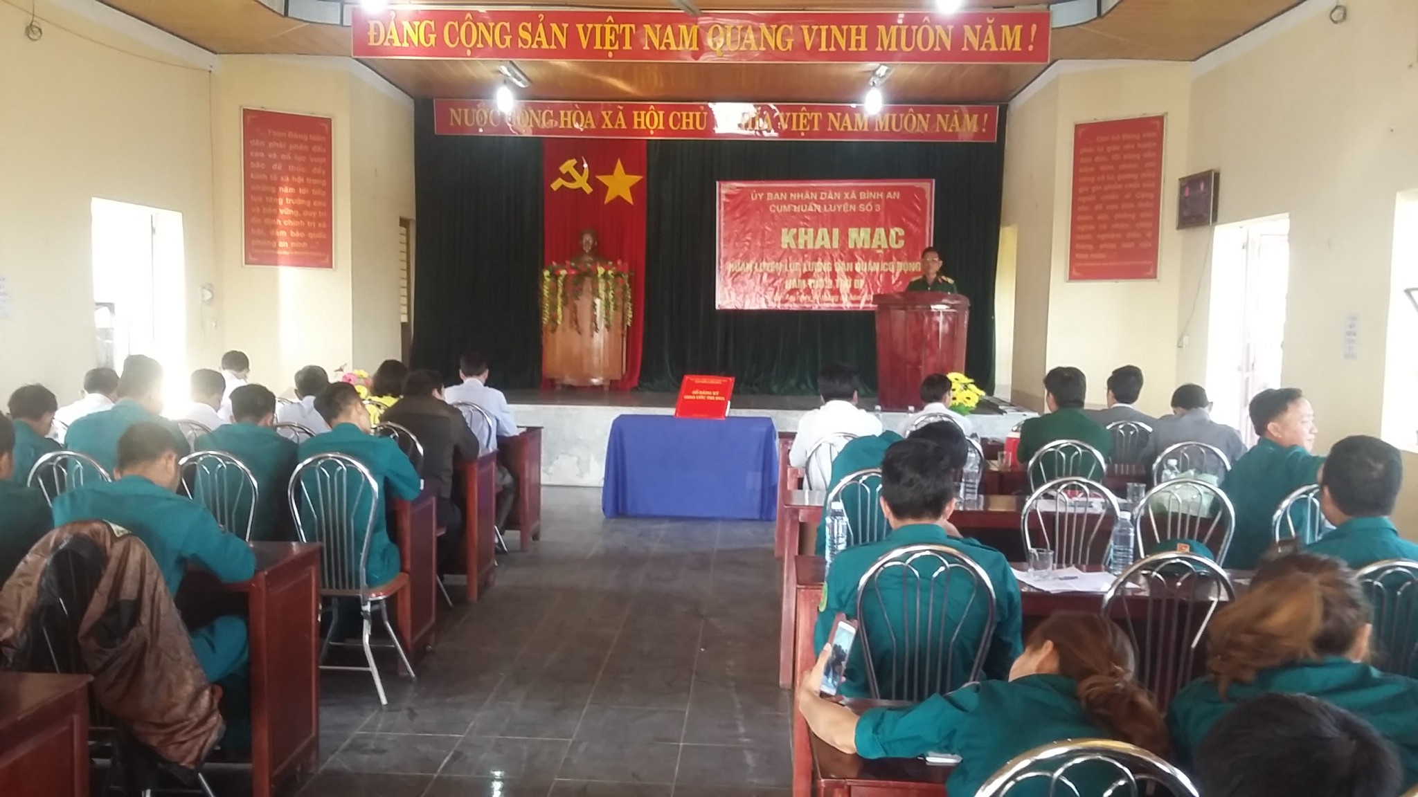 Trong thời gian huấn luyện từ ngày 12 đến ngày 21/3 , cán bộ chiến sỹ dân quân của cụm huấn luyện số 3 gồm 6 xã Bình An, Thị trấn Hà Lam, Bình nguyên, Bình Tú, Bình Trung, Bình Nam được học lý thuyết và thực hành trên thao trường với các nội dung: giáo án, bài giảng; nội dung về tình hình kinh tế, chính trị, văn hóa, xã hội, củng cố quốc phòng, an ninh trong xây dựng và bảo vệ Tổ quốc; huấn luyện Điều lệnh đội ngũ; huấn luyện đội ngũ chiến thuật … nhằm giúp cho lực lượng dân quân thực hiện thuần thục các phương án, nâng cao khả năng cơ động, sẵn sàng chiến đấu cao. Tổng số DQCĐ được huấn luyện lần này là 91 DQ . Sau thời buổi khai mạc các chiến sĩ dân quân bước vào học chính trị tại hội trường UBND xã.