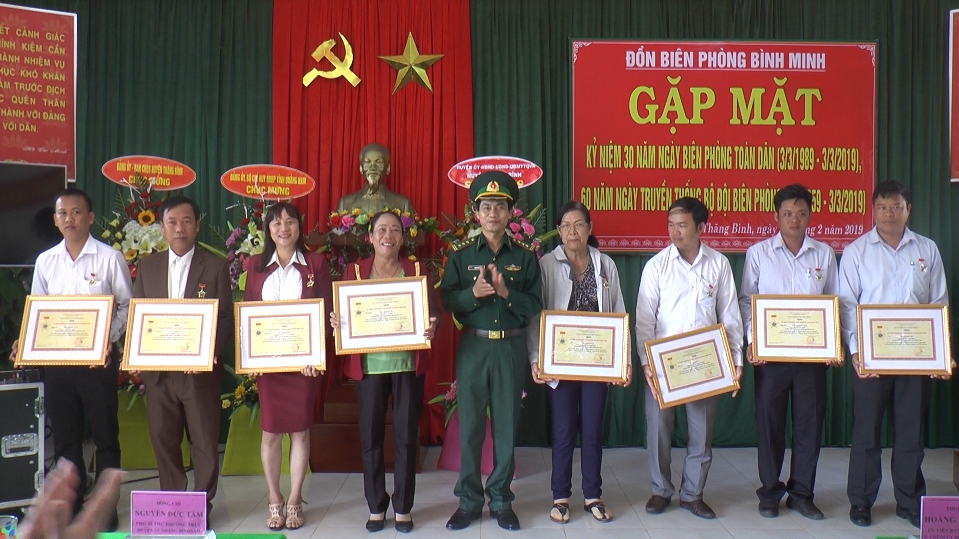 Kể từ khi được thành lập vào 27/4/1975, tại thôn 6, xã Bình Dương, đến nay, đồn Biên phòng Bình Minh đã trải qua 4 lần thay đổi phiên hiệu, 4 lần chuyển vị trí đóng quân. Những năm qua, cán bộ, chiến sỹ Đồn Biên phòng luôn dựa vào dân, dựa vào chính quyền, tích cực, bền bỉ làm tốt công tác vận động quần chúng, từng bước xây dựng phòng tuyến nhân dân, huy động sức mạnh của nhân dân tham gia vào trận tuyến bảo vệ an ninh biên giới vùng biển. Hình ảnh anh bộ đội cụ Hồ mang quân hàm xanh đã trở nên quen thuộc, thân thương và gắn bó với nhân dân địa phương trong suốt mấy chục năm qua. Cán bộ, chiến sỹ đồn Biên phòng luôn gần gũi, tận tình và đầy trách nhiệm với nhân dân. Qua 30 năm triển khai ngày Biên phòng toàn dân, các bộ, ngành Trung ương và địa phương đã có nhiều cố gắng xây dựng khu vực biên giới phát triển toàn diện về chính trị, kinh tế, văn hóa, xã hội và quốc phòng- an ninh. Dịp này, 28 cá nhân đã được nhận kỷ niệm chương Vì chủ quyền an ninh biên giới vì đã có nhiều đóng góp vào sự nghiệp bảo vệ chủ quyền, an ninh biên giới của Tổ quốc và xây dựng lực lượng BĐBP./.