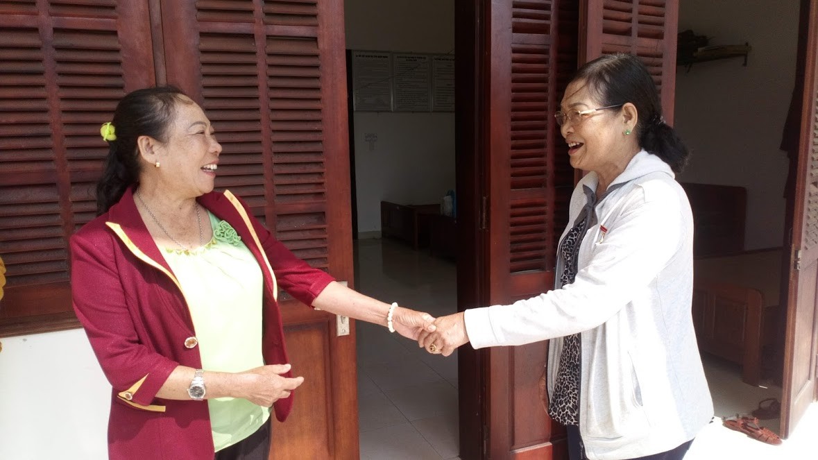 Bà Hồng (bên trái) trong ngày gặp mặt tại Đồn Biên phòng Bình Minh