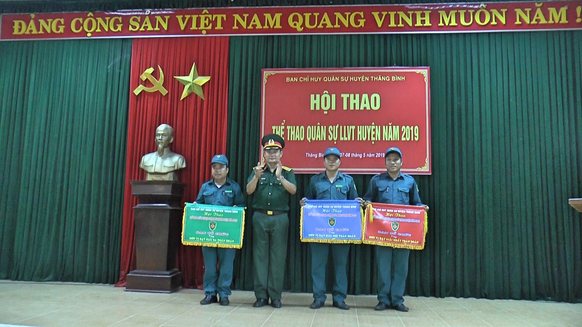 Kết thúc hội thao, Ban tổ chức đã trao huy chương vàng cho chiến sĩ dân quân Doãn Văn Vinh ( xã Bình Hải) ở nội dung 3 môn thể thao quân sự phối hợp nam; chiến sĩ dân quân Nguyễn Thị Kim Thắm (thị trấn Hà Lam) giành huy chương vàng ở nội dung nữ. Đối với môn võ chiến đấu, chiến sĩ dân quân Hồ Thanh Việt và Nguyễn Quang Vinh (xã Bình Triều) giành huy chương vàng; dân quân Huỳnh Thị Phương và Võ Thị Thành (thị trấn Hà Lam) giành huy chương vàng ở nội dung nữ. Các chiến sĩ dân quân Nguyễn Tấn Pháp và Nguyễn Thị Lan Vy ( xã Bình Minh) giành huy chương vàng ở môn bơi vũ trang; ban tổ chức còn trao huy chương bạc, đồng ở từng nội dung thi đấu.