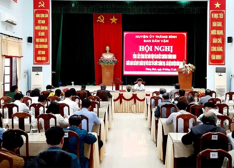 Trong năm 2019, Ban CHQS huyện Thăng Bình và các tổ chức chính trị - xã hội các cấp trên địa bàn đã phối hợp tuyên truyền vận động nhân dân, cán bộ, chiến sĩ, đoàn viên, hội viên tham gia thực hiện hiệu quả chương trình thi đua dân vận khéo; xây dựng đơn vị dân vận tốt; nghĩa tình biên giới, hải đảo; chung tay vì biển đảo quê hương; đền ơn đáp nghĩa; chung tay vì người nghèo; hũ gạo vì người nghèo... Lực lượng vũ trang huyện và các tổ chức chính trị - xã hội các cấp đã phối hợp tuyên truyền vận động nhân dân, cán bộ, chiến sỹ, hội viên, đoàn viên tham gia thực hiện có hiệu quả các phong trào, các cuộc vận động do Đảng, Nhà nước, Mặt trận Tổ quốc, quân đội và các hội, đoàn thể phát động; trọng tâm là các phong trào thi đua “Dân vận khéo”, xây dựng “Đơn vị dân vận tốt”, “Toàn dân đoàn kết xây dựng nông thôn mới, đô thị văn minh”, “Chung sức xây dựng nông thôn mới”, “Nghĩa tình biên giới, hải đảo”, “Chung tay vì biển đảo quê hương”, “Chiến dịch hè tình nguyện năm 2019”các cuộc vận động “Đền ơn đáp nghĩa”, “Ngày vì người nghèo”, “Chung tay vì sức khỏe cộng đồng”, mô hình “xóa đói, giảm nghèo”, “Hũ gạo vì người nghèo”,… Cán bộ, chiến sỹ, hội viên, đoàn viên đóng góp hơn 16.800 ngày công tham gia các chương trình phát triển kinh tế, xã hội, hỗ trợ cơ sở vật chất, chuyển giao kỹ thuật nuôi trồng giúp nhân dân xóa nghèo, khám bệnh, cấp phát thuốc miễn phí, xây dựng nhà tình nghĩa, nhà tình thương, nhà mái ấm công đoàn, giúp học sinh nghèo vươn lên trong học tập, tặng quà và trợ cấp khó khăn cho nhân dân, tư vấn hướng nghiệp nghề nghiệp, đào tạo nghề và giới thiệu việc làm cho thanh niên và quân nhân hoàn thành nghĩa vụ tại ngũ về lại địa phương; phòng chống tệ nạn xã hội phát huy hiệu quả, góp phần bảo đảm an sinh xã hội, củng cố thế trận lòng dân được cấp ủy, chính quyền và nhân dân đánh giá cao. Thông qua đó góp phần củng cố tình đoàn kết quân dân, củng cố niềm tin vào sự lãnh đạo của Đảng, Nhà nước với nhân dân.