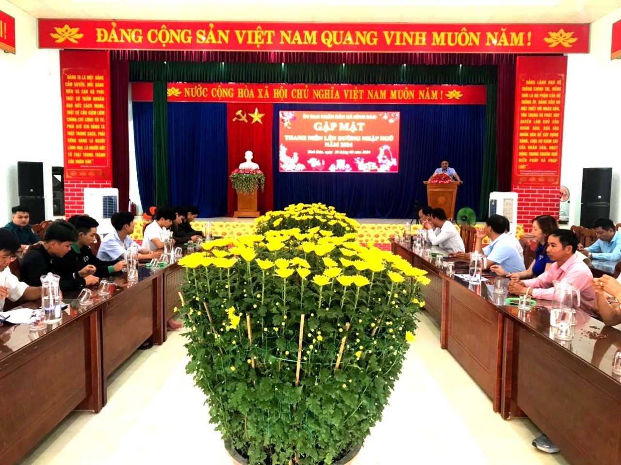 Tại buổi gặp mặt, các đồng chí lãnh đạo Đảng, chính quyền địa phương xã Bình Đào đã phát biểu động viên các Tân binh yên tâm lên đường nhập ngũ. Đồng thời gửi gắm niềm tin tưởng của Đảng bộ, Chính quyền và Nhân dân địa phương đến những Tân binh của xã lên đường nhập ngũ năm 2024 luôn luôn phát huy truyền thống cách mạng của quê hương, ra sức phấn đấu, rèn luyện, trưởng thành trong môi trường quân đội, hoàn thành xuất sắc mọi nhiệm vụ mà Đảng và quân đội giao. Các đồng chí lãnh đạo Đảng, chính quyền địa phương, Mặt trận, các đoàn thể xã đã tặng quà động viên Tân binh lên đường nhập ngũ năm 2024.