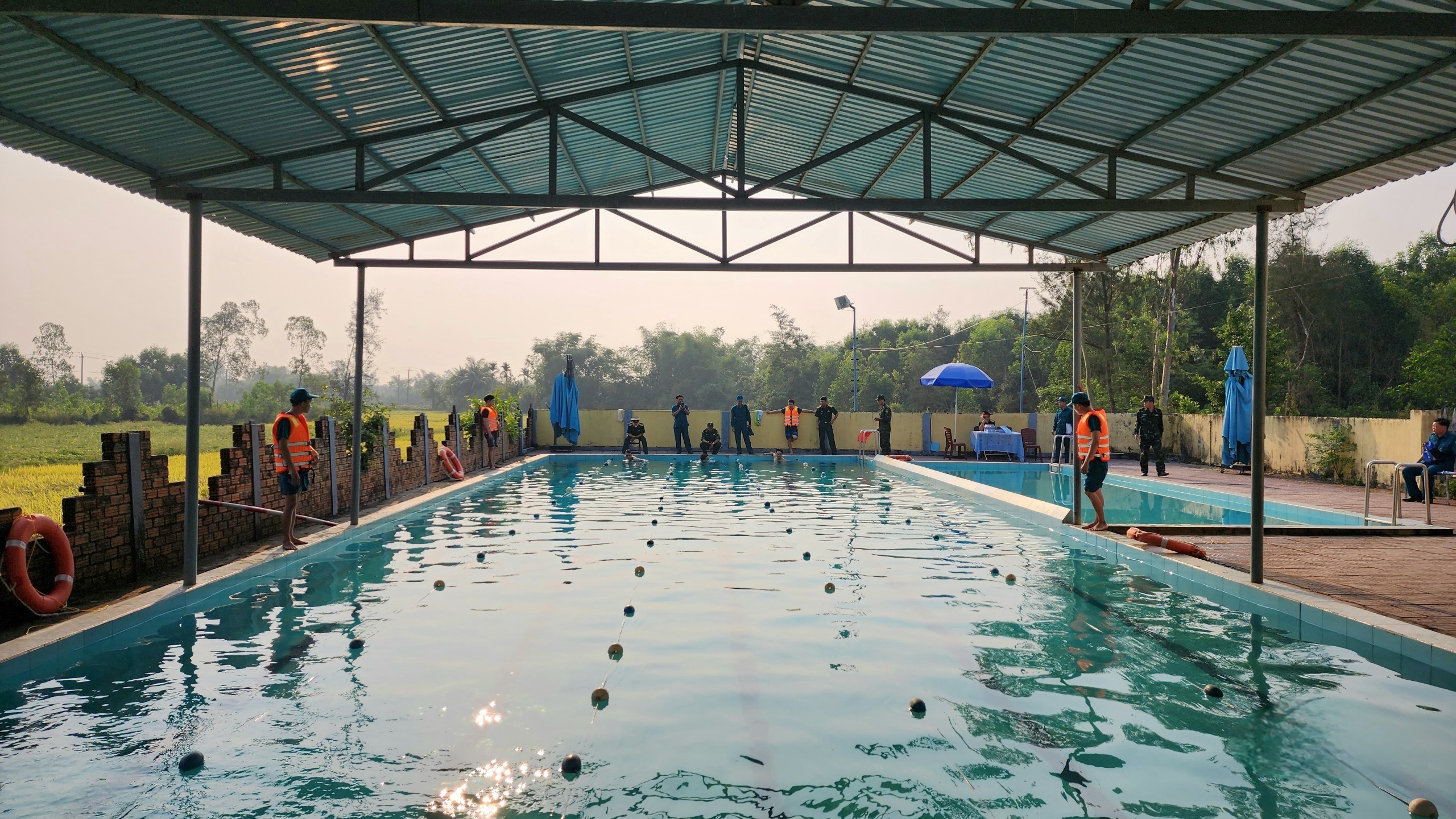 Các vận động viên tham gia bơi vũ trang cự ly 100 mét mang súng và trang bị nhẹ