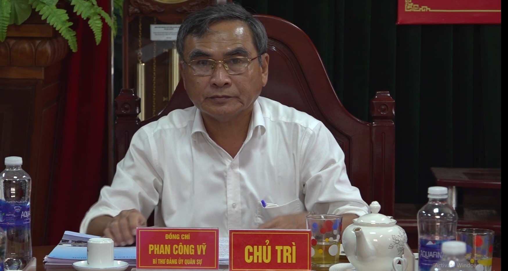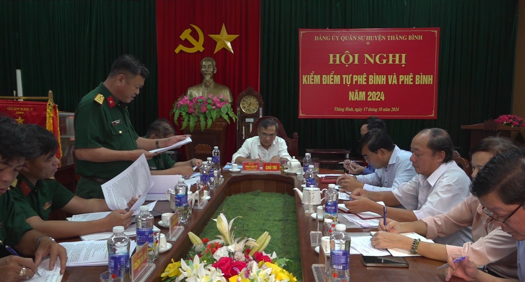 Đồng chí Phan Công Vỹ - TUV, Bí thư huyện uỷ kiêm Bí thư Đảng uỷ quân sự huyện chủ trì