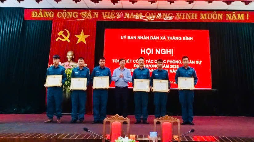 Tại hội nghị, UBND xã Thăng Bình đã khen thưởng 04 tập thể và 06 cá nhân có thành tích xuất sắc trong công tác quân sự – quốc phòng năm 2025. Đây là sự ghi nhận xứng đáng, đồng thời là động lực để lực lượng quân sự xã tiếp tục nâng cao hiệu quả hoạt động trong năm tới.