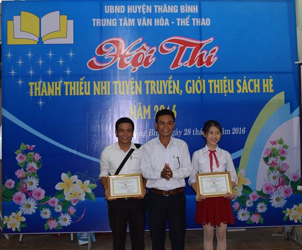( Giám đốc Trung tấm VH-TT Thăng Bình Võ Anh Trung, trao giải cho các thí sinh tại hội thi.)