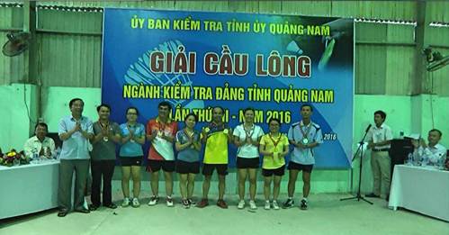 Giải cầu lông thường niên của ngành kiểm tra Đảng tỉnh Quảng Nam được tổ chức hướng tới kỉ niệm 68 năm ngày thành lập kiểm tra Đảng 16/10/1948 – 16/10/2016; qua đó tạo không khí sôi nổi, đoàn kết giao lưu giữa các đơn vị trên địa bàn tỉnh. Giải năm nay thu hút 21 đơn vị đến từ 18 Ủy ban kiểm tra của các huyện, thành phố và 3 đơn vị Đảng ủy tỉnh gồm công an, quân sự và doanh nghiệp. Các nội dung thi đấu của giải gồm: đơn nam, đôi nam, đôi nam nữ; với thể thức thi đấu loại trực tiếp. Kết thúc giải đấu, ở nội dung đơn nam, huy chương vàng thuộc về vận động viên Châu Duy Bình của đơn vị Thăng Bình; vận động viên Nguyễn Văn Cường – Đảng ủy quân sự tỉnh giành huy chương bạc. Ở nội dung đôi nam, cặp vận động viên của đơn vị Hiệp Đức là Nguyễn Văn Nhanh và Đinh Quang Công xuất sắc giành huy chương vàng; huy chương bạc thuộc về cặp vận động viên Nguyễn Văn Cường và Lê Văn Luyện thuộc Đảng ủy Quân sự tỉnh. Ở nội dung đôi nam nữ, cặp vận động viên Nguyễn Đình Bình và Thái Thị Tường Vân đơn vị Hiệp Đức đã xuất sắc giành huy chương vàng giải đấu./.