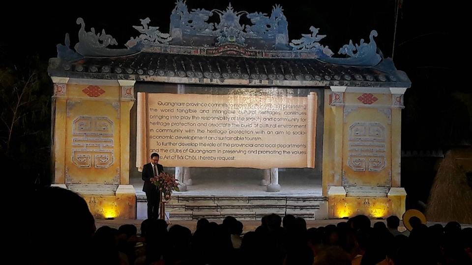Quang cảnh tại lễ đón bằng UNESCO công nhận nghệ thuật Bài chòi Trung bộ là Di sản văn hóa phi vật thể đại diện của nhân loại.
