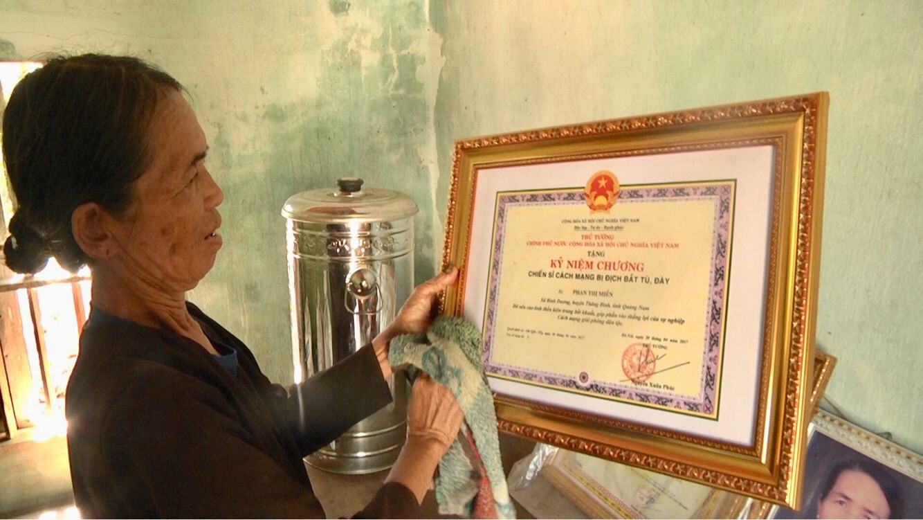 Cụ bà Phan Thị Miễn, 75 tuổi, ở thôn 4, xã Bình Dương, huyện Thăng Bình đã nuôi mong mỏi có được một ngôi nhà kiên cố suốt 5 năm nay. Từ khi chính quyền địa phương rà soát đến khi UBND tỉnh có phê duyệt chính thức, bà đã khấp khởi mừng vui, rằng sẽ sớm thoát khỏi sự sợ hãi khi hằng ngày phải sống một mình trong ngôi nhà ọp ẹp. Thế nhưng, tuổi càng ngày càng cao, sức càng ngày càng yếu, ngôi nhà càng lúc càng dột nát mà mãi vẫn chưa được nhận hỗ trợ. “Cứ mưa bão là tôi tới nhà họ nấp chứ không dám ở nhà. Mấy lần trước, bão rồi ngã cây chèn lên mái nhà bể hết ngói phải mua về lợp đỡ lại. Mấy bữa ni nóng quá, tôi cũng tới nhà họ ở chứ không ở nhà mình được. Mà chừ cũng không biết làm sao sửa, có tiền mới sửa được, không có, lấy chi sửa.”- bà Miễn chia sẻ.