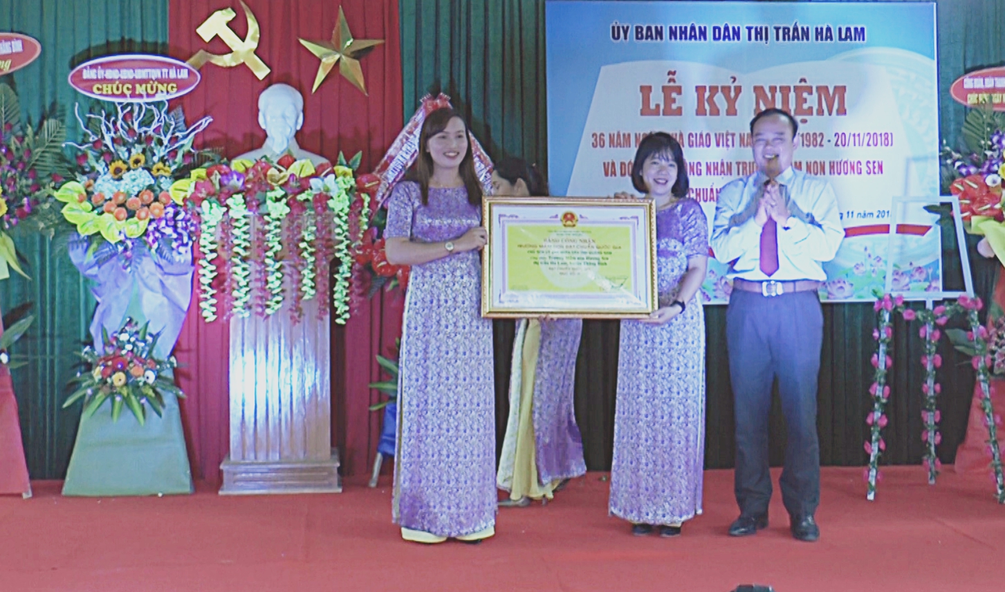 Trong những năm qua, tập thể cán bộ giáo viên, nhân viên trường Mẫu giáo Hương Sen đã tích cực hưởng ứng và tham gia có hiệu quả các phong trào thi đua với nhiều hình thức huy động xã hội hóa giáo dục, góp phần tạo môi trường giáo dục lành mạnh, nâng cao chất lượng giáo dục toàn diện. Dịp này, trường Mẫu giáo Hương Sen đã vinh dự đón nhận trường Mẫu giáo đạt chuẩn Quốc gia mức độ 2, đây là sự động viên, khích lệ to lớn đối với toàn thể cán bộ, giáo viên nhà trường, tạo điều kiện để nhà trường nâng tầm uy tín, khẳng định chất lượng đối với cộng đồng xã hội./.