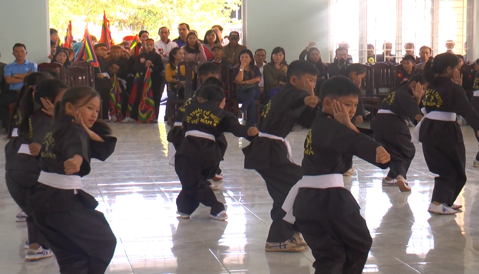Với 27 động tác của bài võ được trường Tiểu học Trưng Vương lồng ghép vào câu chuyện của Hai Bà Trưng thuở trước. Những động tác dứt khoát, những tiếng hô mạnh mẽ thể hiện niềm tự hào của thế hệ hôm nay về những chiến công hiển hách của cha ông, về bộ môn chứa đượm tinh hoa dân tộc, khí phách và cốt cách con người Việt. Khi biết mình là 1 trong 20 học sinh được chọn tham gia hội diễn ở huyện, em Nguyễn Trần Phương Dung, học sinh lớp 4/2, trường Tiểu học Trưng Vương, xã Bình Nguyên cảm thấy rất vinh dự và vui mừng. Mặc dù là nữ nhưng khi tiếp xúc với võ cổ truyền trong 3 tháng qua, Dung lại nảy sinh tình yêu đặc biệt với bộ môn này. “Khi học võ cổ truyền thì em cảm thấy rất thích thú, ba mẹ em cũng thích. Em luôn cố gắng luyện tập để học giỏi môn này.”- Dung chia sẻ.