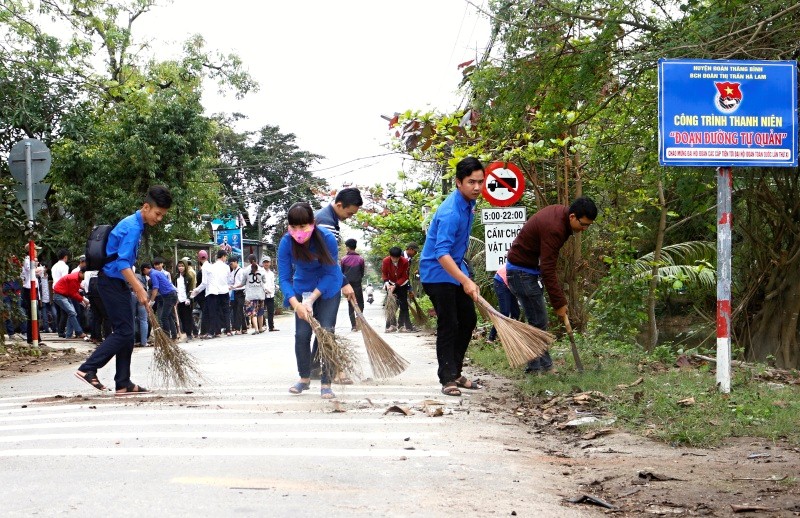 (Ảnh: Tuổi trẻ TT Hà Lam ra quân dọn dẹp đoạn đường tự quản)